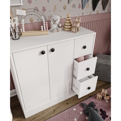 Dolap menteşe kapaklıdır. Dolap ön kapaklarındaki desenler dijital baskıdır.