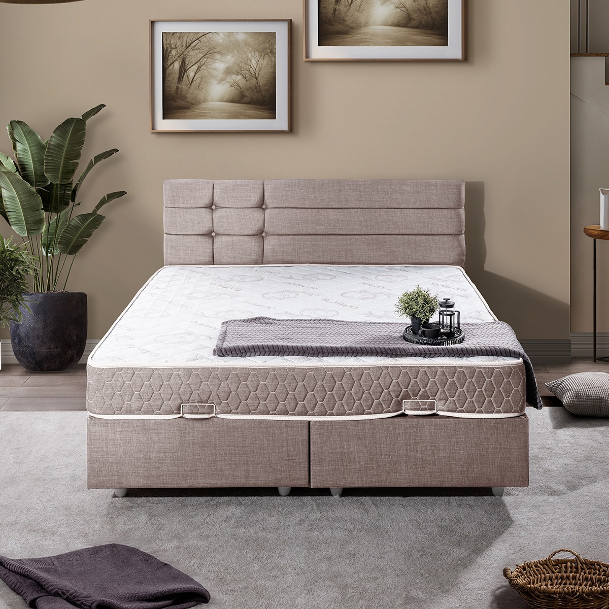 Setay Viyana Çift Kişilik Baza Başlık Letto Yatak Seti Kahve