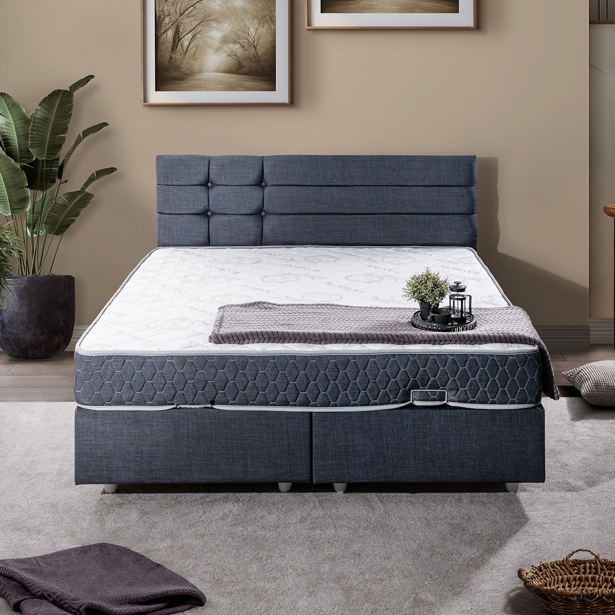 Setay Viyana Çift Kişilik Baza Başlık Letto Yatak Seti Lacivert
