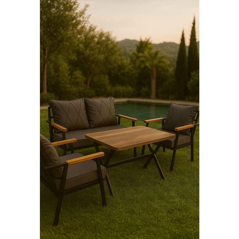 Simhouse Metal Çay Seti 2+1+1 Bahçe Balkon Teras Takımı