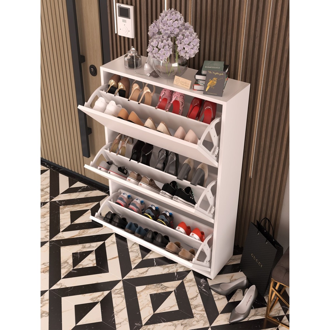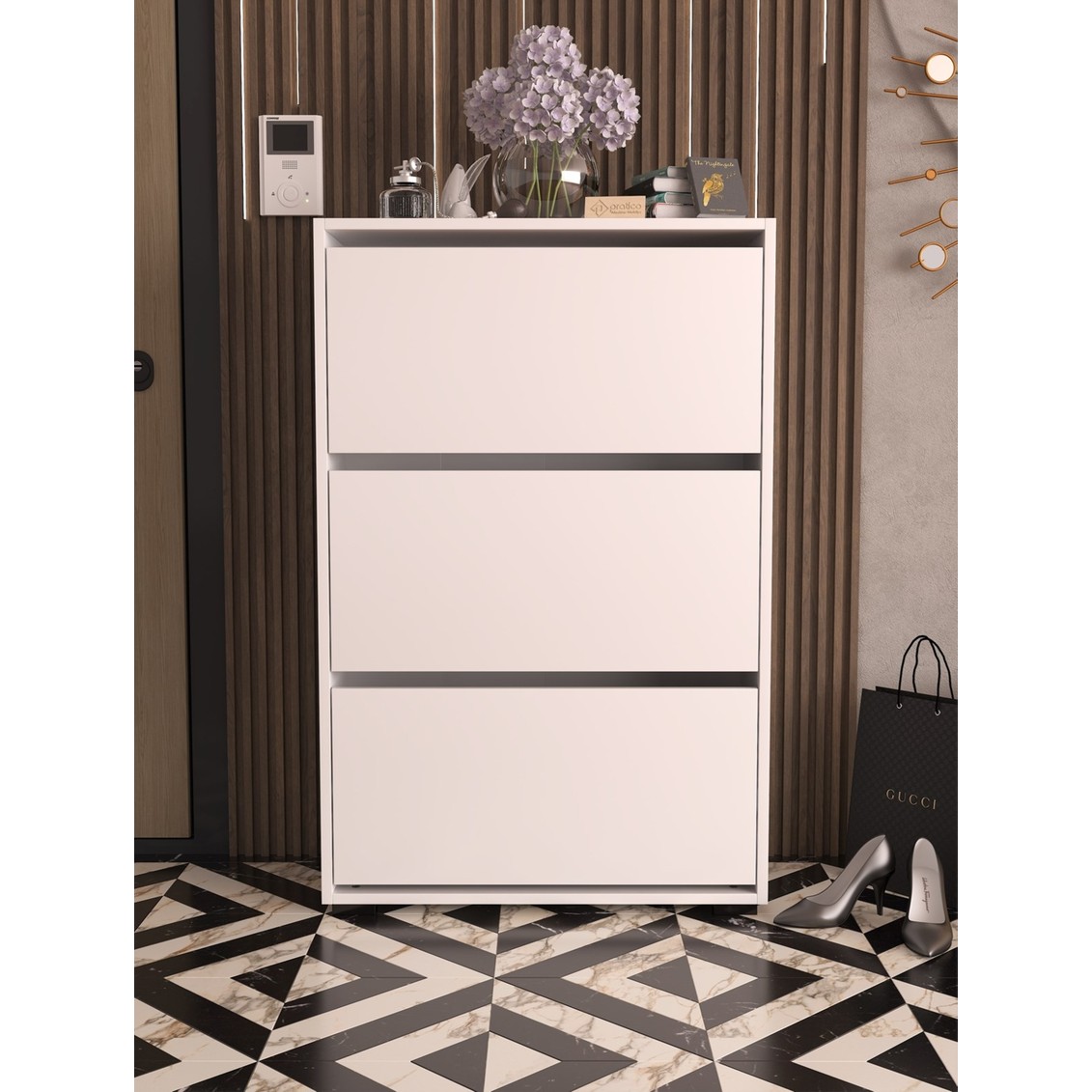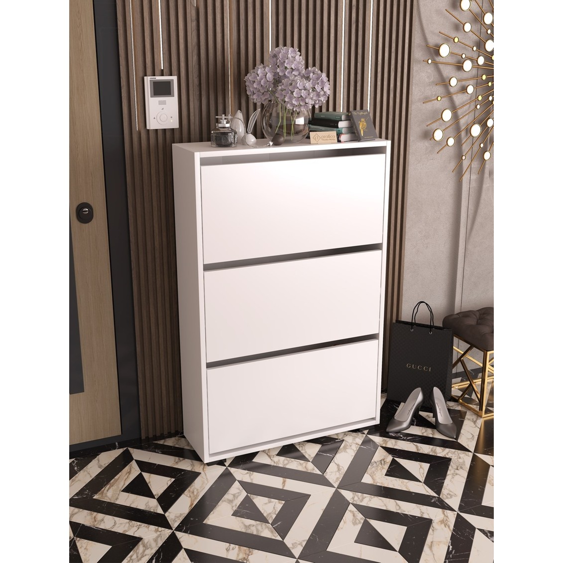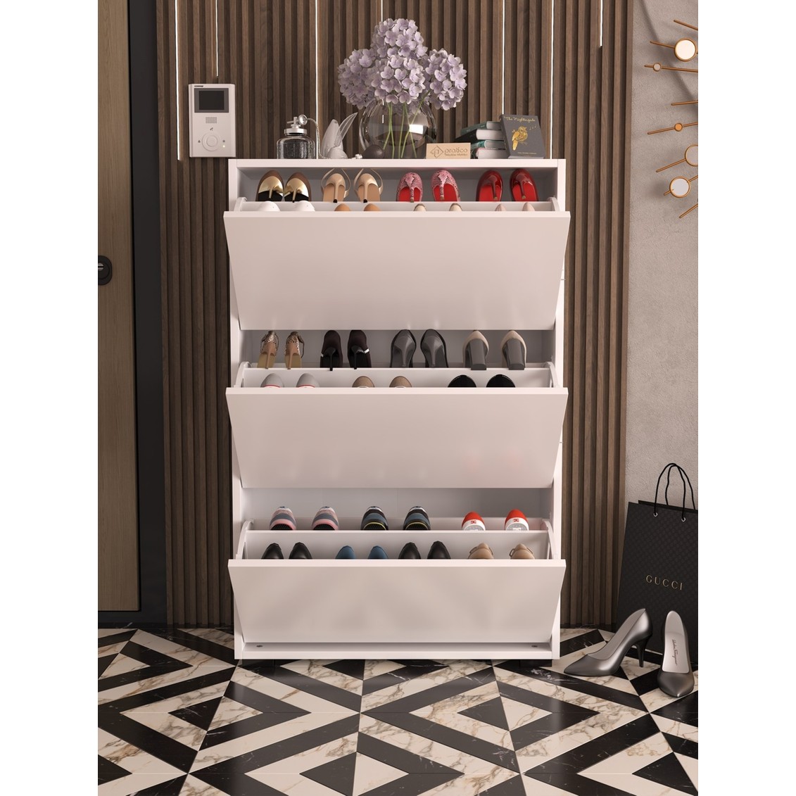 Skeche Düşer Kapak Ayakkabılık Raflı Ayakkabılık 3 Bölmeli Ayakkabılık Beyaz