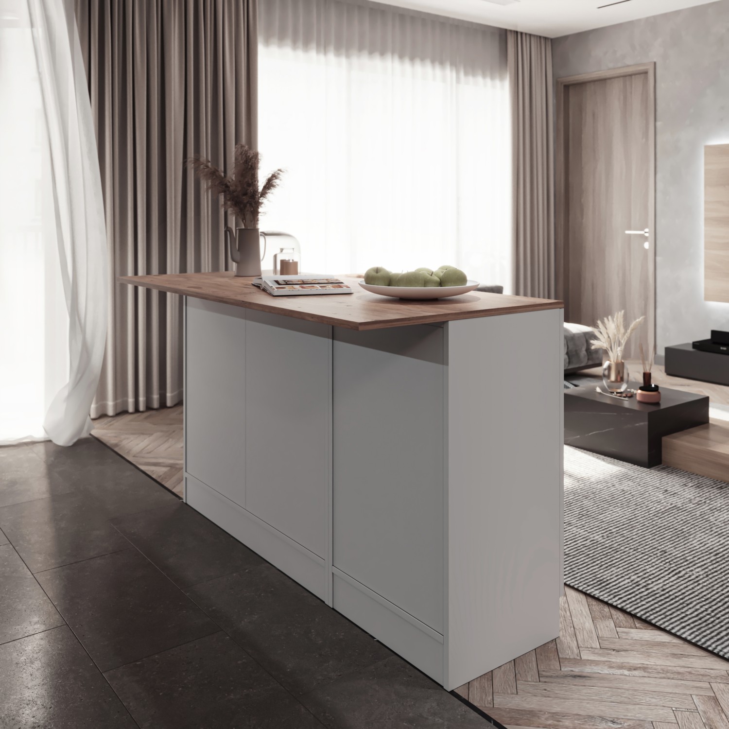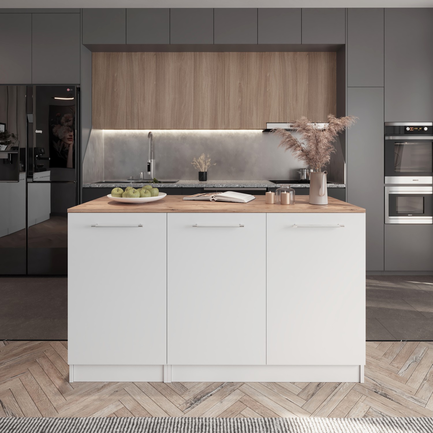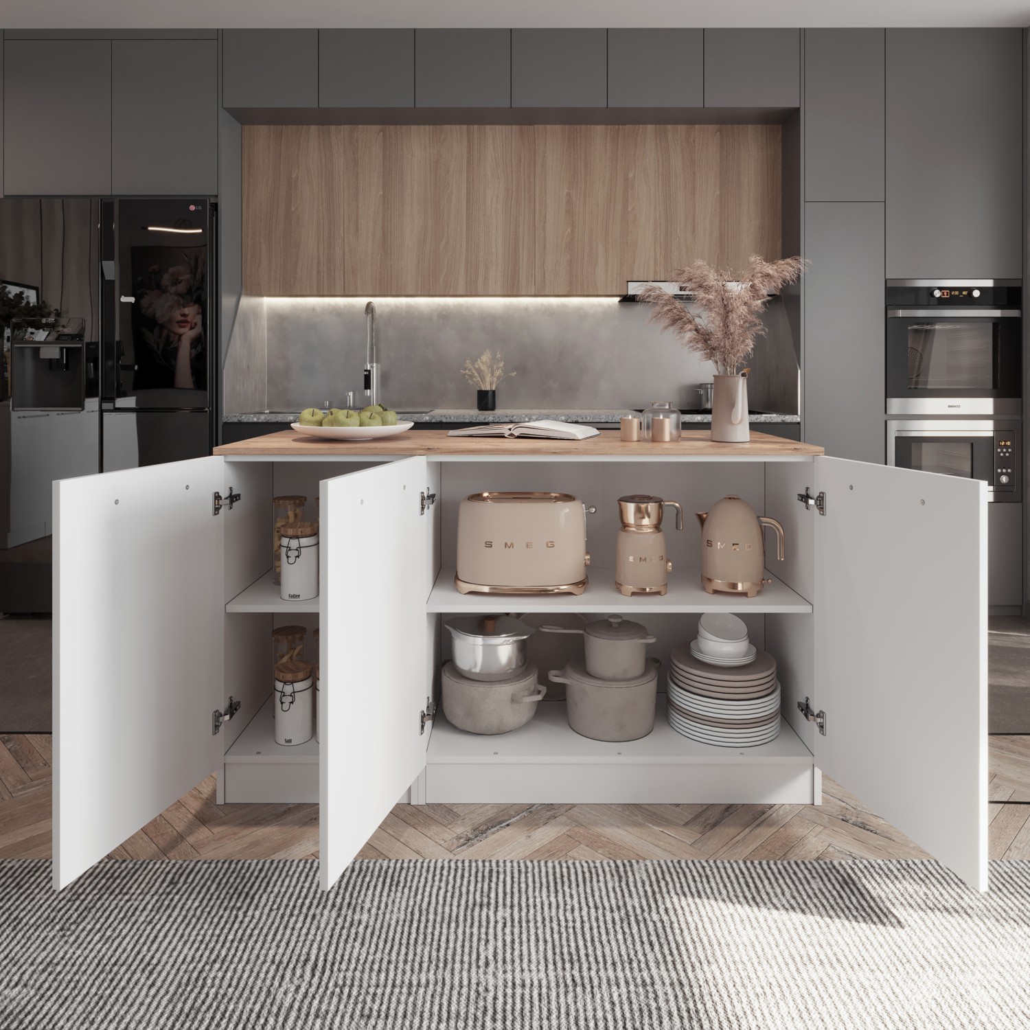 T Designo Katrina Mutfak Adası Alt Modül 120 cm Beyaz Tezgah Dahil