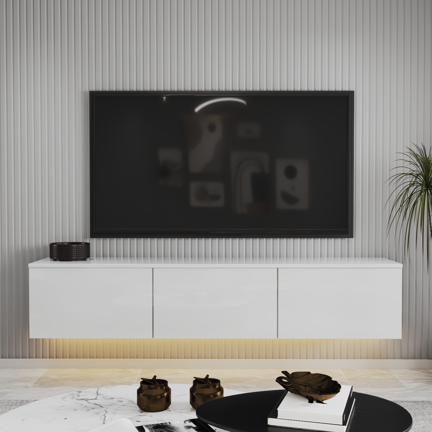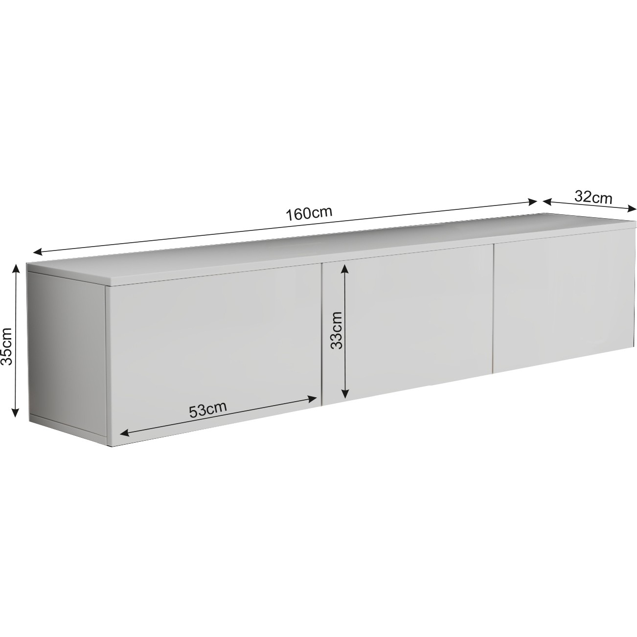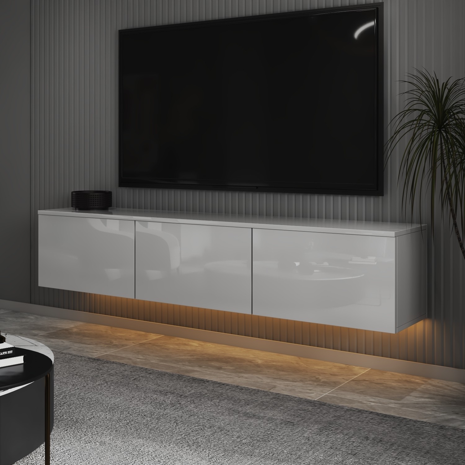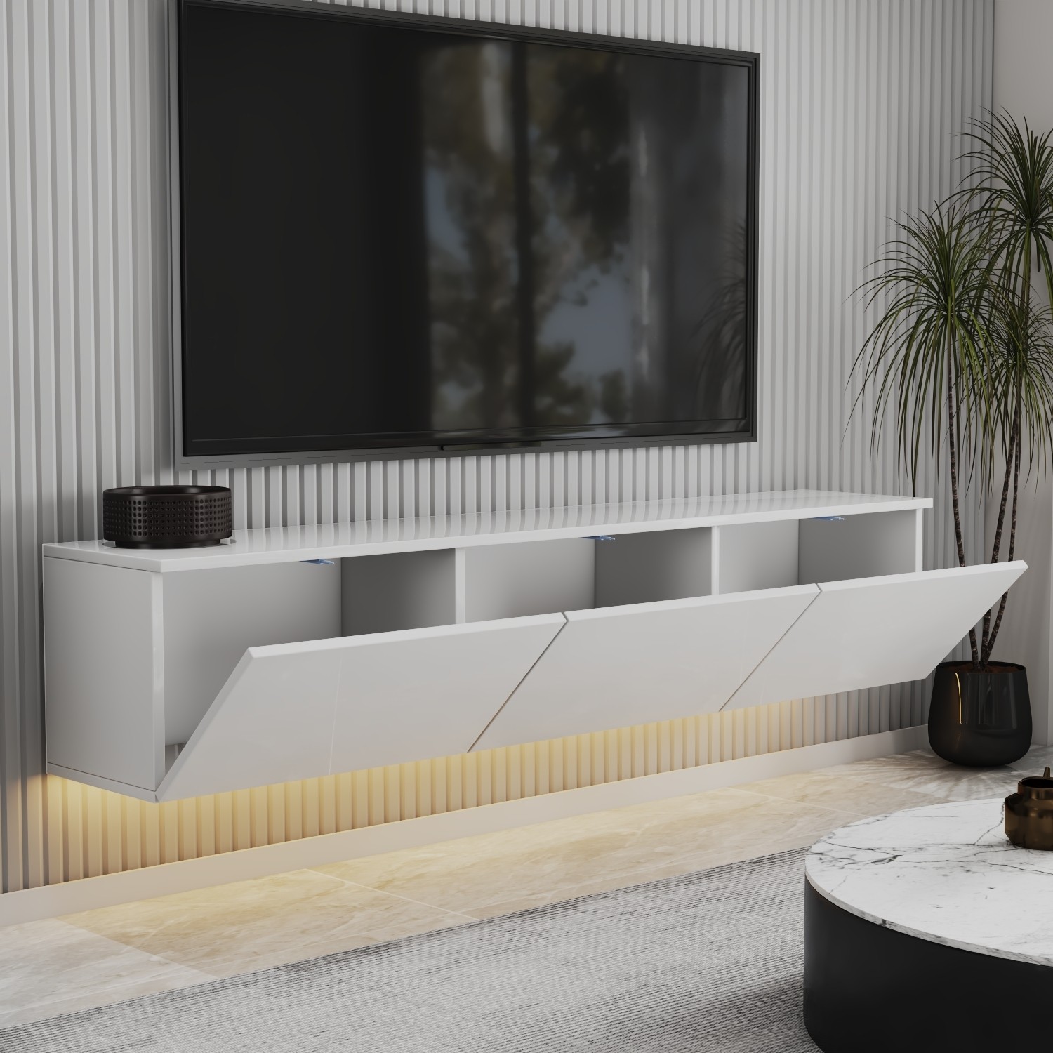 T0020 Alston 3 Kapaklı Duvara Monte Tv Ünitesi – LED Işıklı, Modern Tasarım, 160 cm