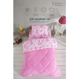 Tek kişilik çarşaflı prenses desenli çift taraflı wellsoft uyku seti(yorgan+çarşaf+yastık kılıfı)