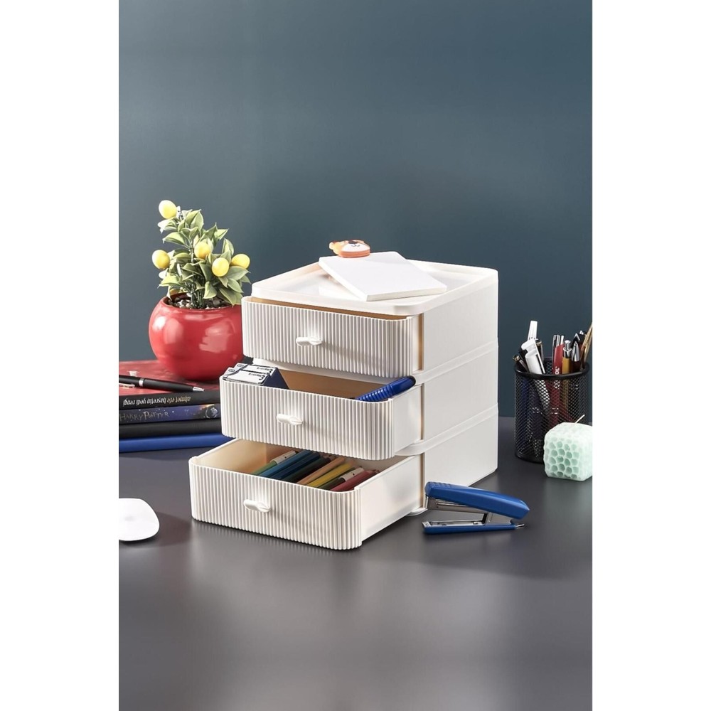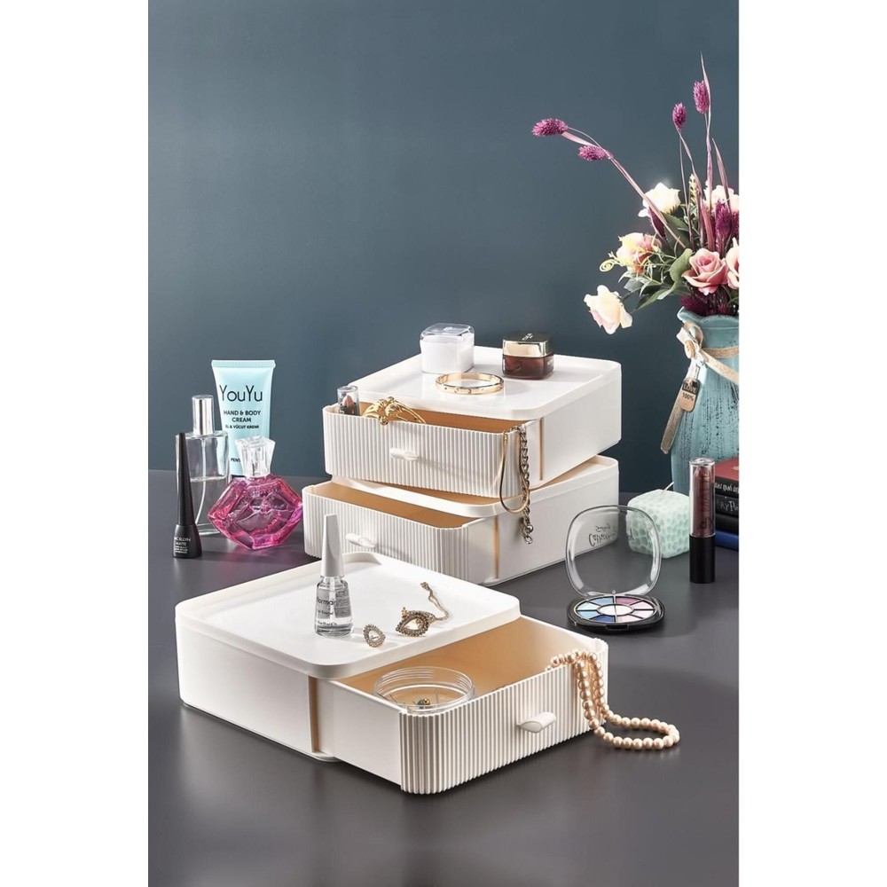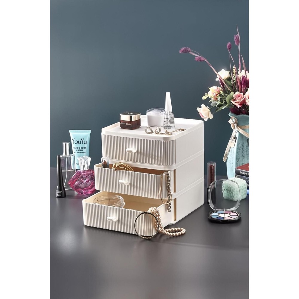 Triobox 3’lü Beyaz Takı, Makyaj Ve Kozmetik Düzenleyici Çekmece, Ofis Masa Düzenleyici