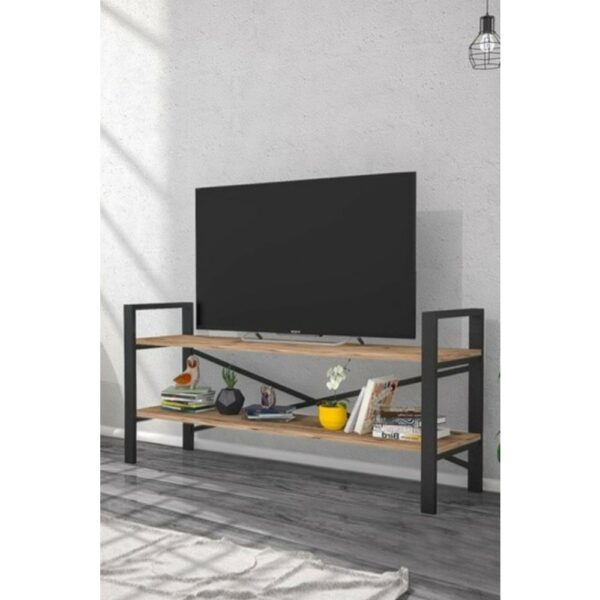 Morpanya Metal Tv Sehpası Raflı Tv Ünitesi Televizyon Sehpası LCD Tv Masası Ceviz MP118