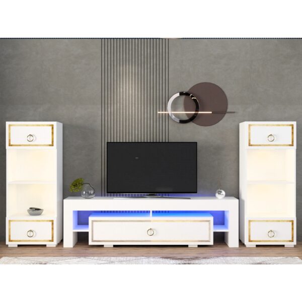 Cantek Dizayn Draw Tv Sehpası Konsol ve Orta Sehpa 3’lü Salon Takımı Beyaz- Royalmermer