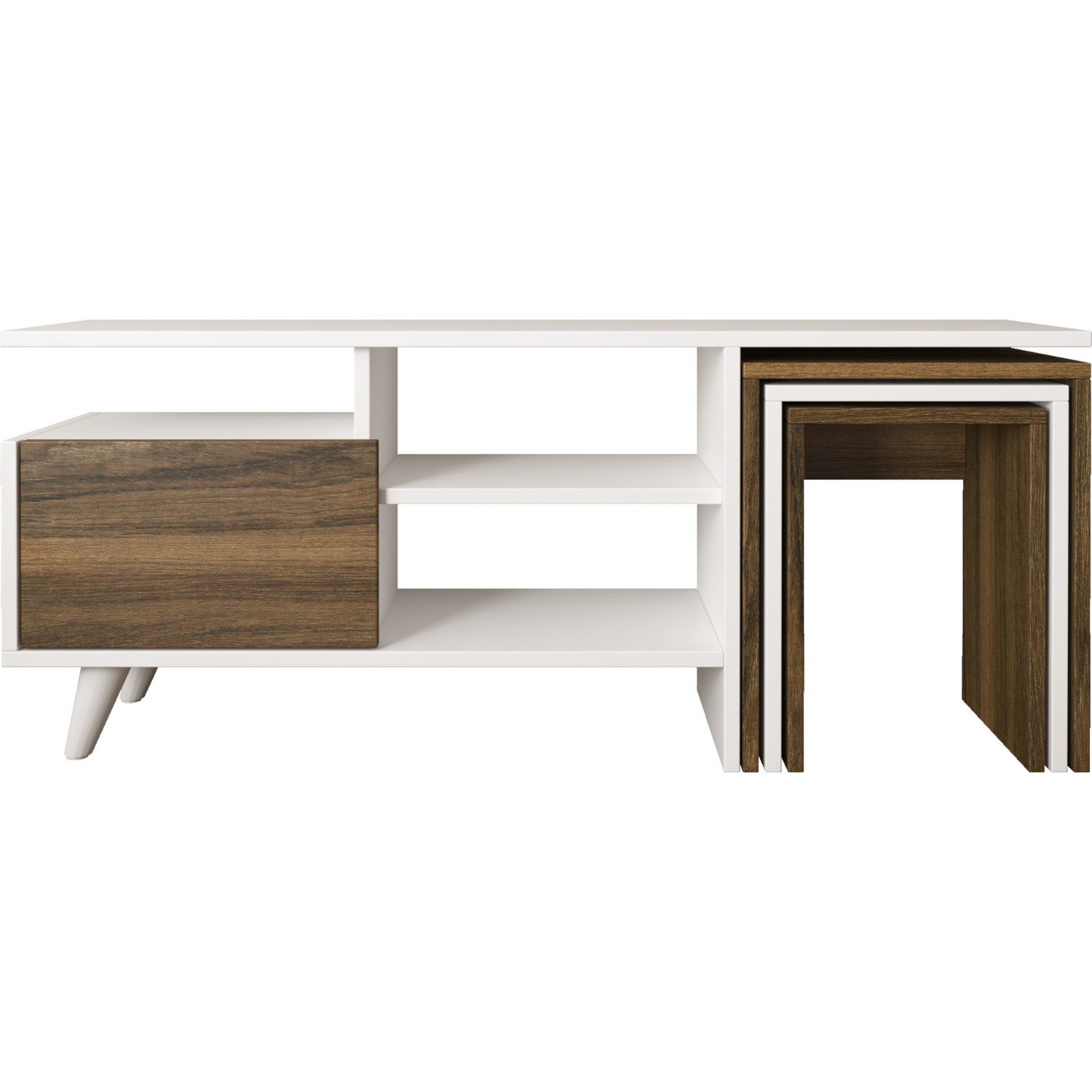 Ucuz Al Serenat Zigonlu Tv Sehpası – Beyaz / Atlantik Çam