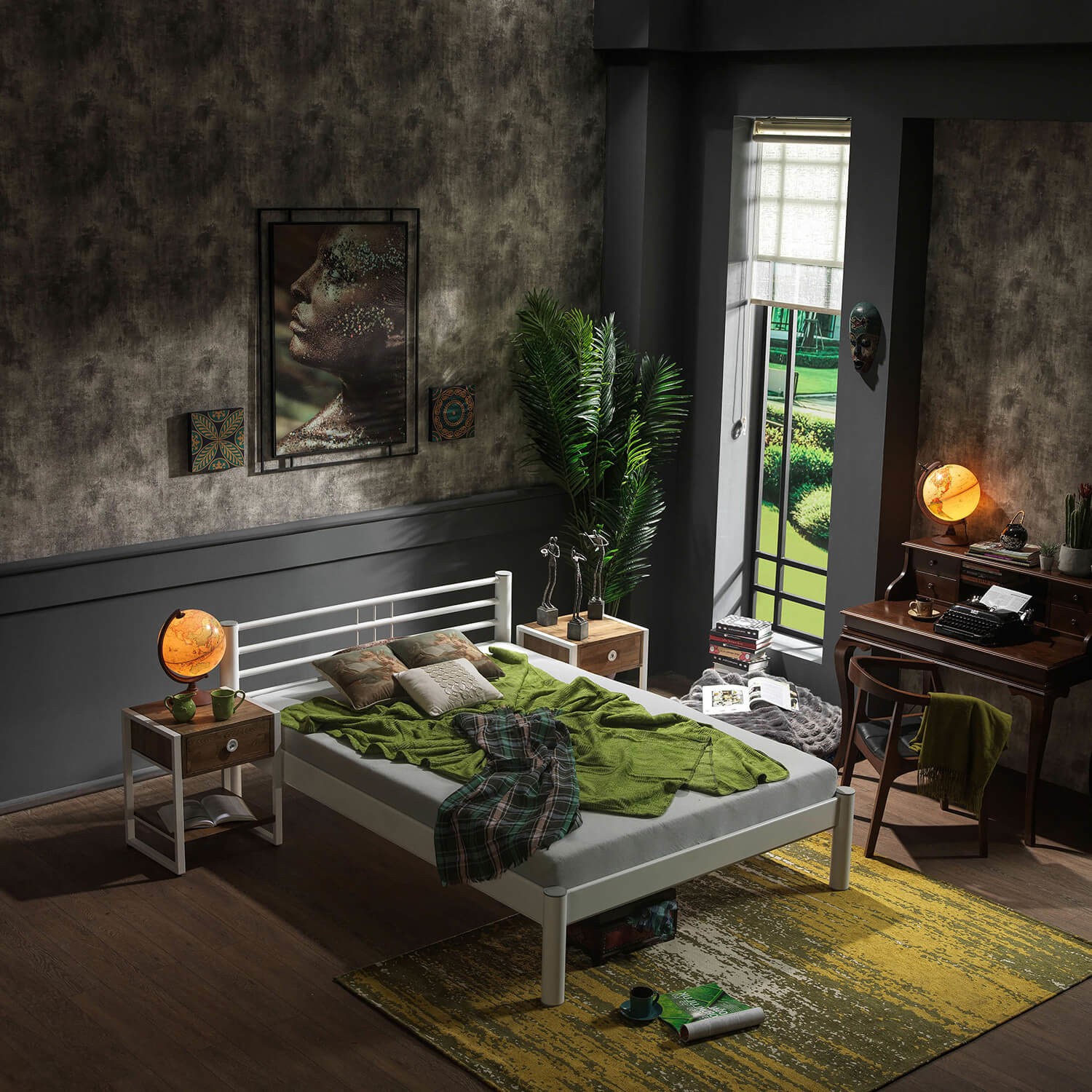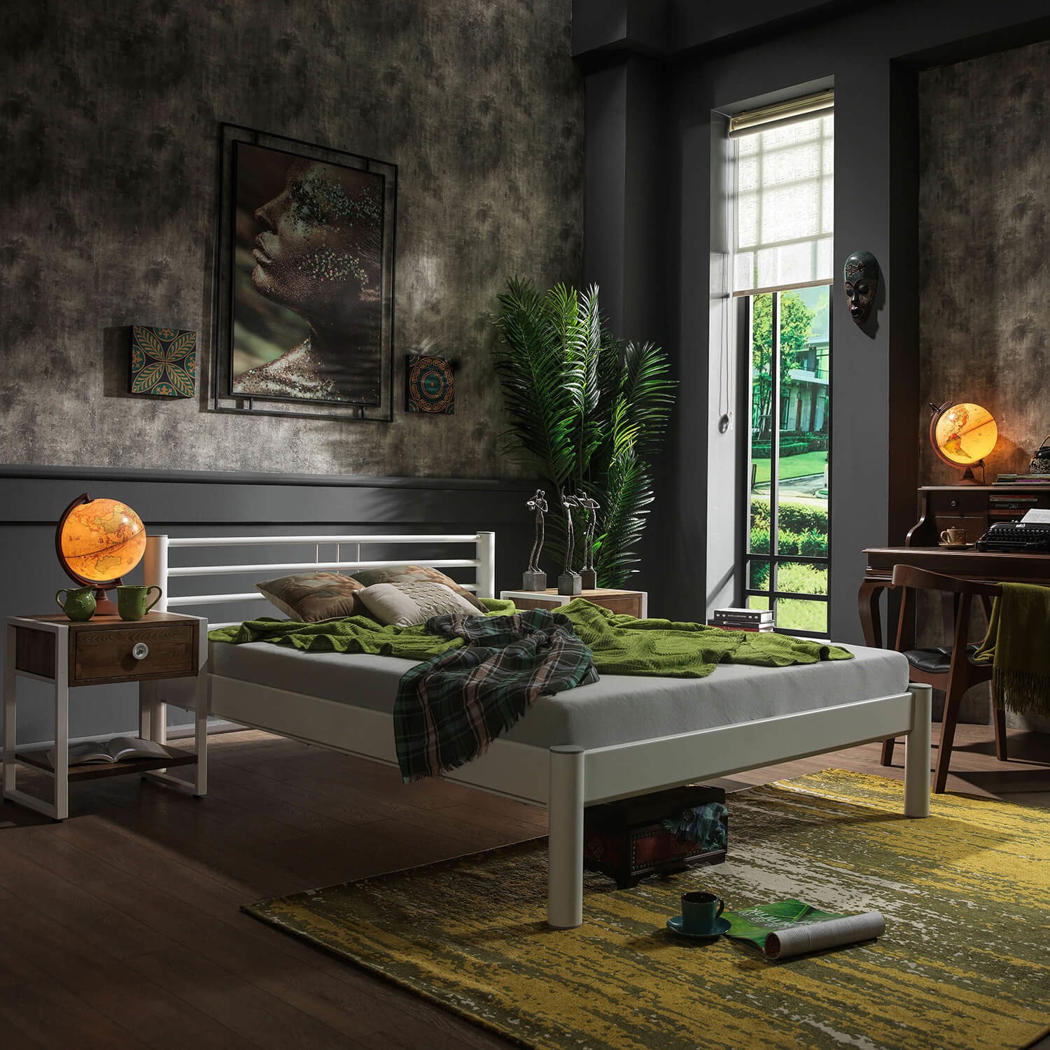 Asos-S Çift Kişilik Ferforje Metal Karyola-Beyaz