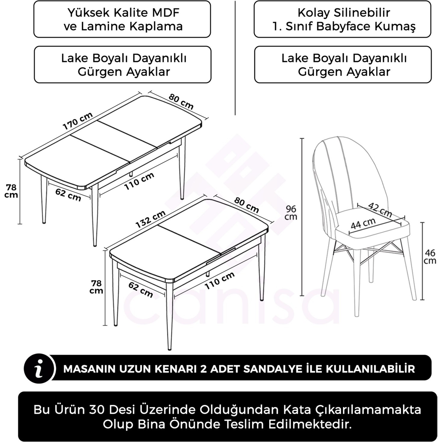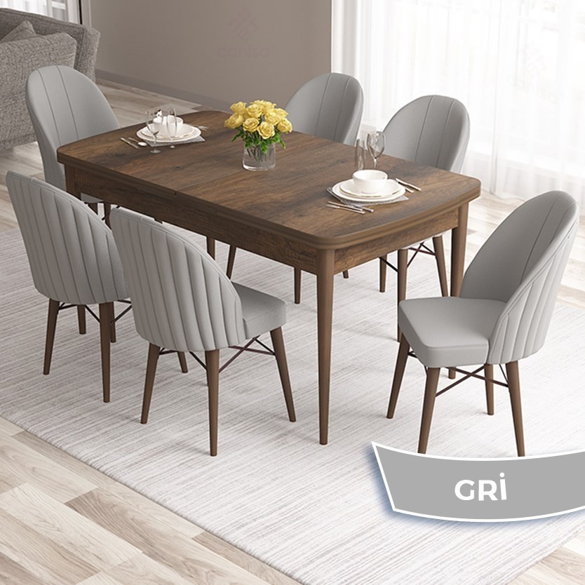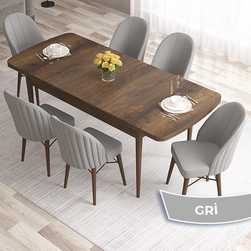 PAKET İÇERİĞİ: BAROK AHŞAP DESEN 80×132 MDF AÇILABİLİR MASA +6 ADET JENA SANDALYE