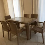 Violet Rattan 80x140cm 6lı Camlı Bahçe Mutfak Masa Takımı Kahve