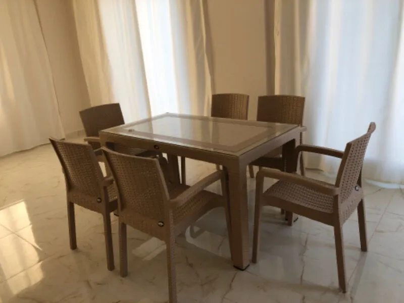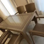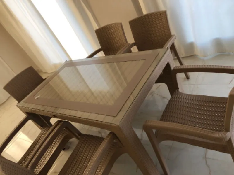 Violet Rattan Masa Takımı 80×140 Camlı Masa 6 Kişilik Sandalye Seti Bahçe Balkon Teras Takımı