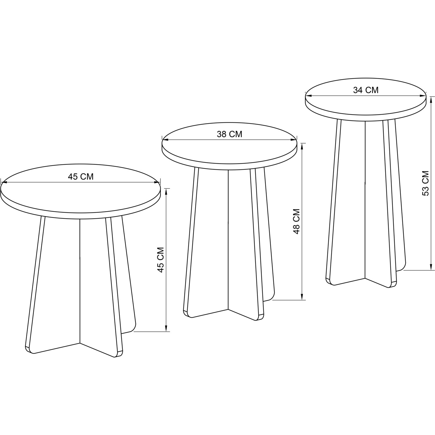 Wood Aria Mantar Sehpa 3’lü Set – Şık ve Fonksiyonel Zigon Sehpa, Yan Sehpa ve Orta Sehpa Takımı