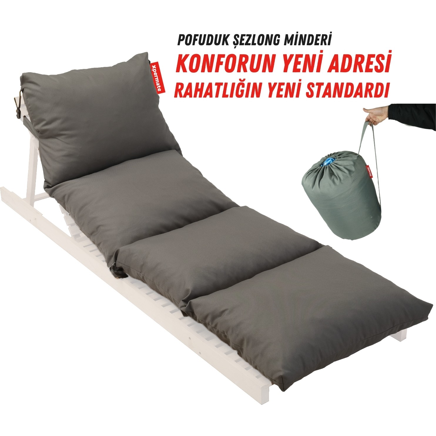 Xpermate Pofuduk Şezlong Minderi Çantalı 60X180X12CM Su Itici,katlanır,uv Güneş Dayanımı, Fermuar, Antrasit