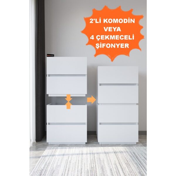 AE-2034 Galata 4 Çekmeceli Patentli Beyaz Şifonyer Yatak Odası Bebek Odası Komodin