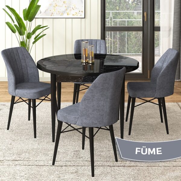 Canisa Concept Aya Serisi 80 x 132 cm Açılabilir Siyah Mermer Desen Mutfak Masa Takımı 4 Sandalye