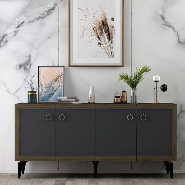 Cantek Dizayn Dört Kapaklı 150 cm Selen Konsol Antrasit-Ceviz