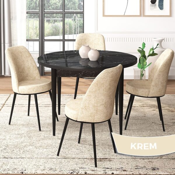 Are SERISI 80 x 132 cm Mdf Açılabilir Siyah Mermer Desen Masa Takımı 6 Sandalye Gümüş Halkalı