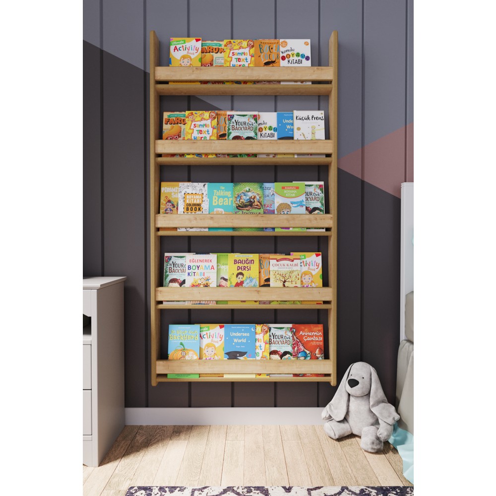 Zeo Wood Design Montessori 5 Raflı Mdf Çocuk Kitaplığı 154*80 cm Safir Meşe